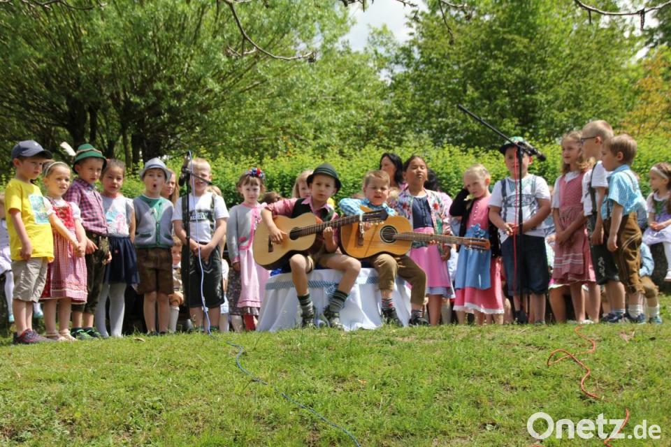 Stilecht gekleidet in Dirndl und Lederhosen waren die Kinder auf der "Freilichtbühne" aufmarschiert. Vor zahlreichen Eltern, Familienangehörigen und Ehrengästen legte die "Boum" und "Moidln" gleich richtig los und sangen ihren Gästen ein „Herzliches Willkommen“. Das Schöne dieser Aufführung war, dass die Kinder sich bei ihren Gedichten und Gesängen der bayerischen und Oberpfälzer Mundart bedienten und damit auch bekannten „Dou bin i dahoam“.