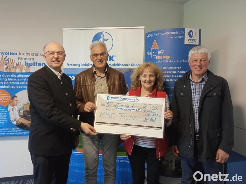 Zusammen mit dem Teunzer Pfarrer Herbert Rösl machten sich zwei Vorstandschaftsmitglieder der Marianischen Männerkongregation (MMC) Teunz auf den Weg nach Regensburg zum Verein zur Förderung krebskranker und körperbehinderter Kinder (VKKK Ostbayern e.V.). Im Elternhaus, welches sich in unmittelbarer Nähe zur UNI-Klinik befindet und vom VKKK erbaut wurde und unterhalten wird, übergaben die Besucher eine Spende in Höhe von 500 Euro.