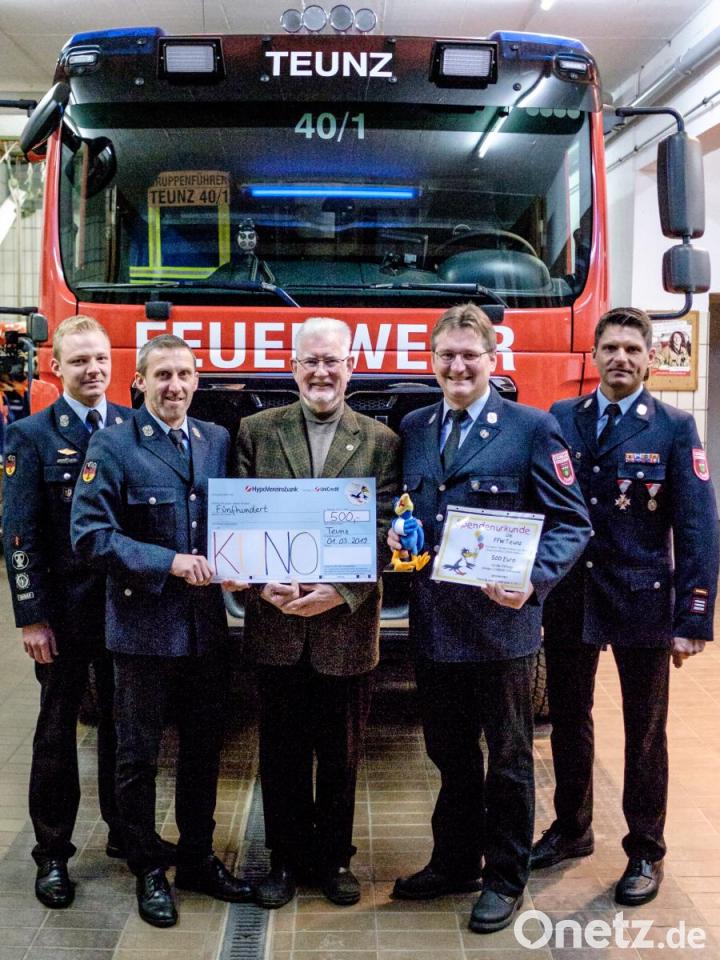 Die Feuerwehr Teunz blickte bei ihrem Jahresabschluss auf ein sehr erfolgreiches Fest im letzten Jahr zurück. Drei Tage wurde gefeiert, getanzt und gelacht. Der letzte Festabend mit dem Konzertprogramm "Sternstunden der Blasmusik", dargeboten von den Schlossbergern aus Eslarn, wurde zugunsten der Kinderklinik Nordostbayern "Kuno" veranstaltet. Die 500 Euro Erlös des Abends wurden nun im Feuerwehrhaus Teunz an Dr. Hans Brockard, Vorstand der Stiftung Kinder-Universitätsklinik für Ostbayern, übergeben. Er erklärte in einem kurzen Vortrag, dass sich die Aufgabe der Stiftung nach der Anschubfinanzierung für die Klinik gewandelt hat.