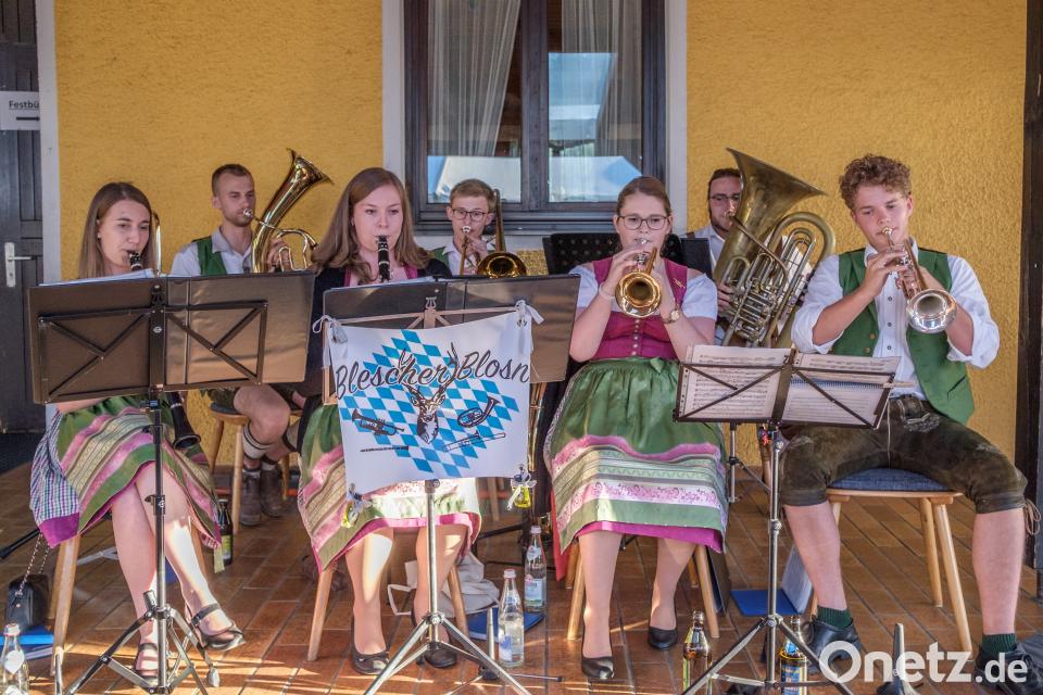 Mit bayerischer Blasmusik von der "Blescher Blosn" und Rollbraten mit Knödel vom Grill war ein gemütlicher Rahmen geschaffen. Beim Blick in die Runde fielen dann auch die bunten Vereins- und Firmen T-Shirts ins Auge. Viele Betriebe nutzten die Gelegenheit, ihren Angestellten etwas Gutes zu tun und auch die örtlichen Vereine und benachbarten Sportclubs waren zahlreich vertreten. Windgeschützt in den Zelten lief der Festbetrieb bis in die späten Abendstunden, obwohl für viele Helfer am Sonntagmorgen bereits wieder Fußball auf dem Programm stand.