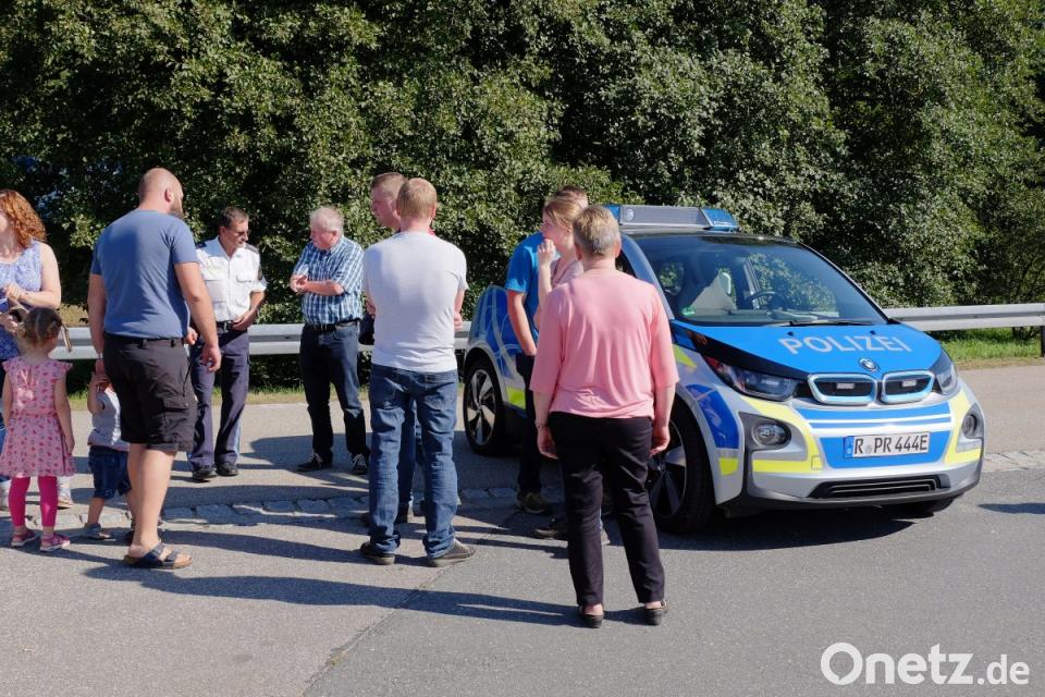 Ein Highlight war das Elektroeinsatzfahrzeug der Polizei vom Typ BMW i3 . Karlheinz Senft von der PI-Oberviechtach stand für die viele Fragen zur Verfügung.