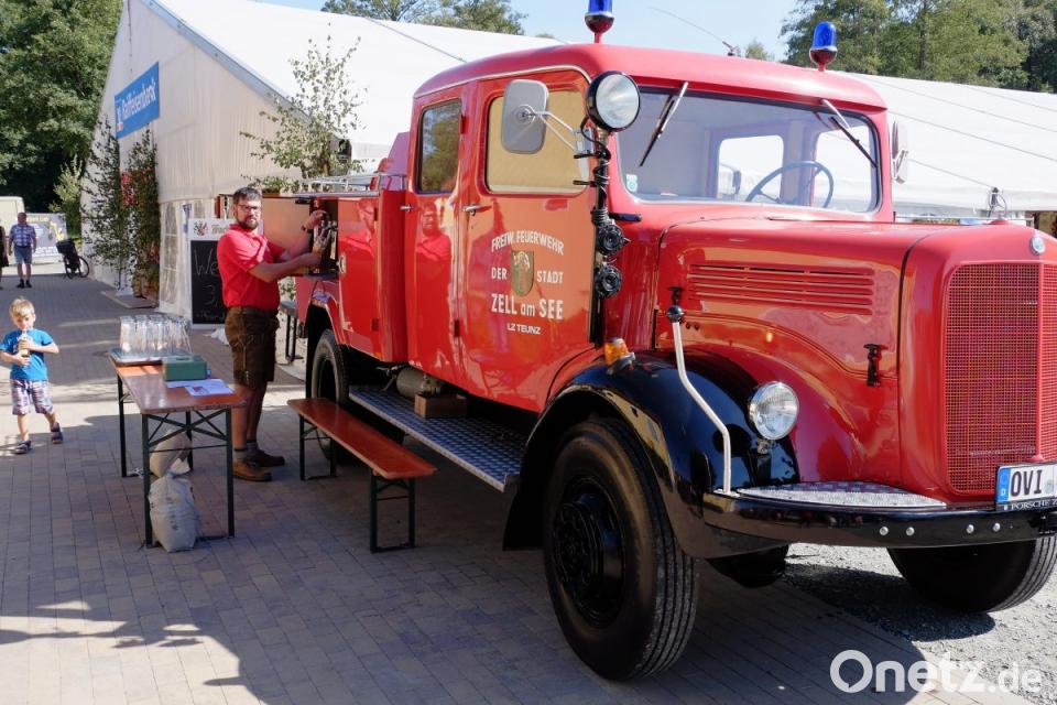 Ein Löschfahrzeug für besondere Einsätze war unter den historischen Fahrzeugen. Statt Wasser spendete der Oldtimer ein kühles Weißbier mit Schaum.