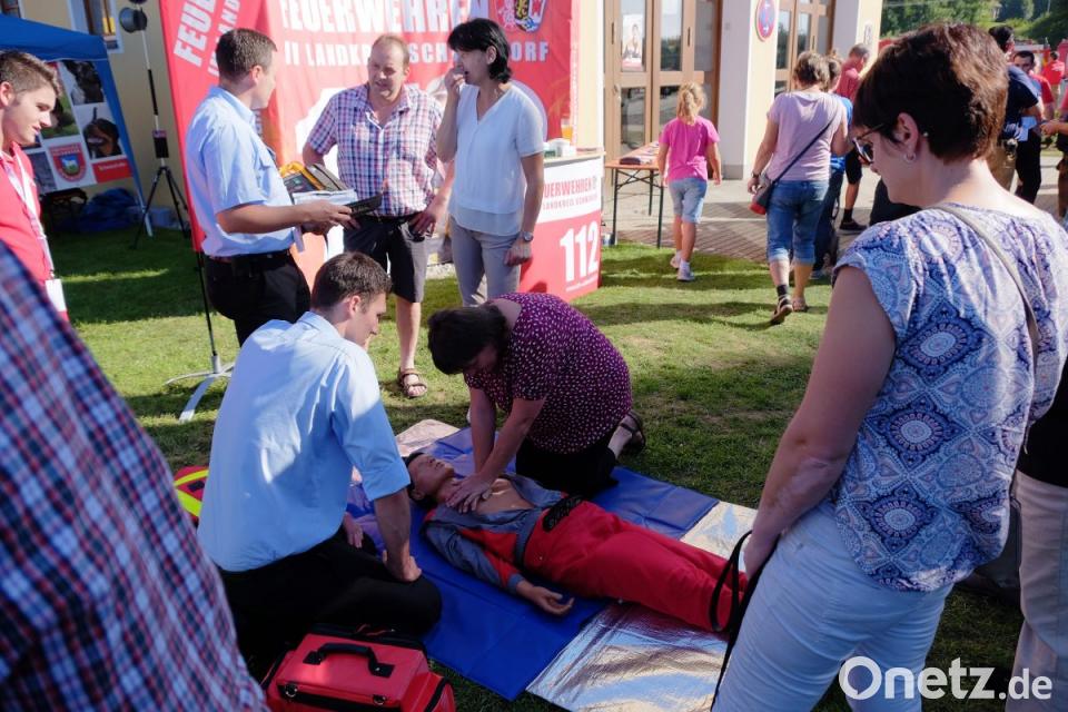 Am Infostand der Freiwilligen Feuerwehr standen Kameraden der First-Responder-Einheit zur Verfügung und boten die Möglichkeit sich einmal wider die Herz-Druck-Massage in Erinnerung zur rufen.