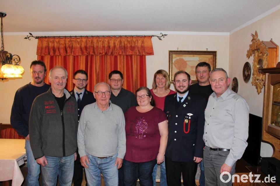 Der Jubilar Josef Bäuml im Kreise der Gratulanten (von links): Uwe Franz (Blaskapelle), Albert Hecht (Bulldogfreunde), Philipp Sertl (Feuerwehr), Josef Bäuml mit Frau Roswitha, dahinter Alois Sladky (OWV), daneben Martha Jung (Flurbereinigung), Tobias Schwamberger (Feuerwehr), Wolfgang Schüßler (Bulldogfreunde) und Bernd Schwamberger (OWV).