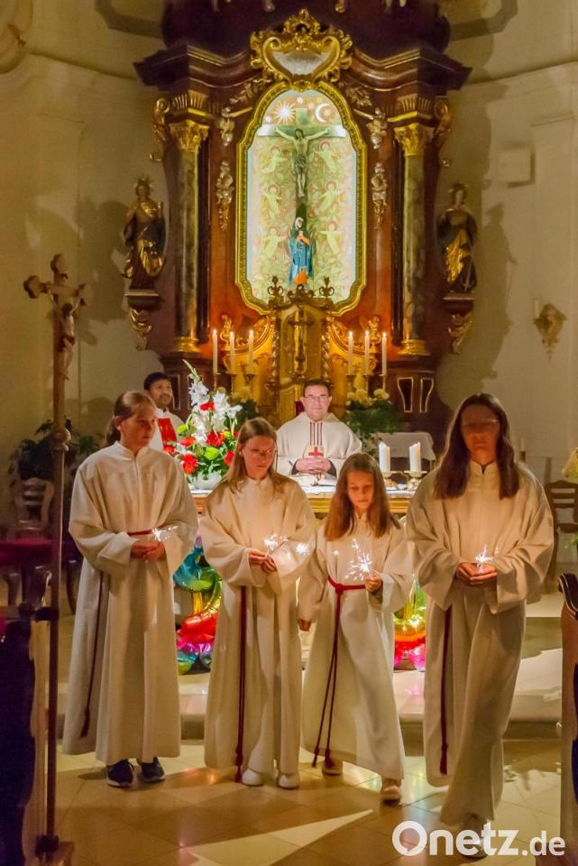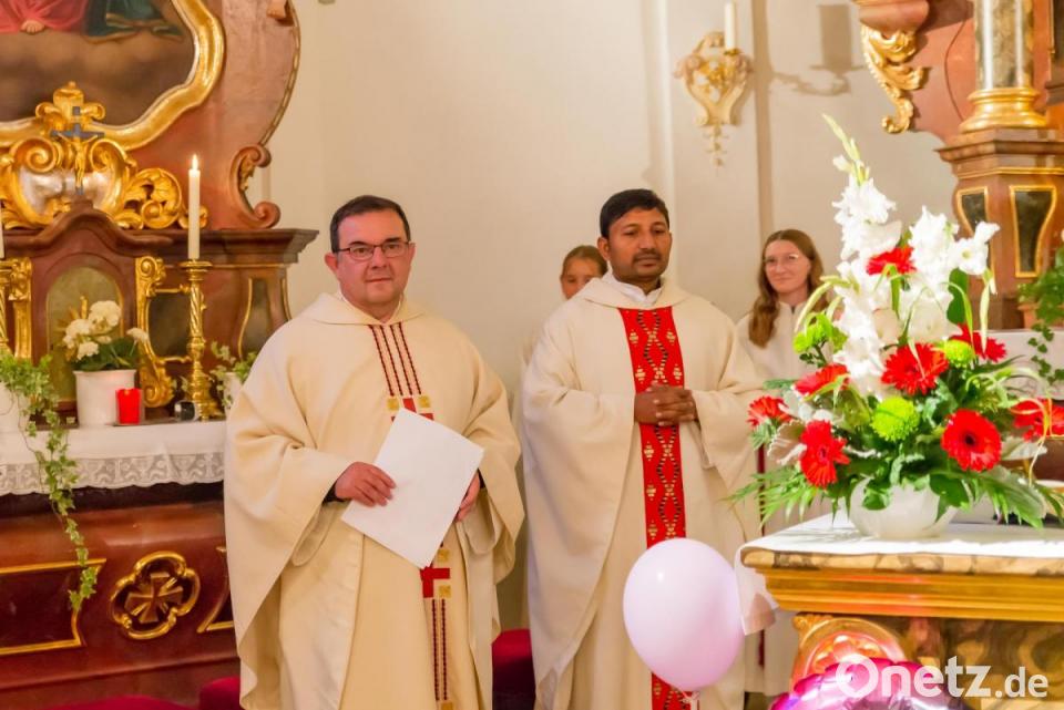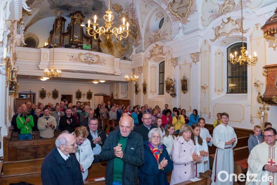 Pfarrer Konrad Amschl, Bürgermeister Alfred Stier aus Bärnau sowie der neue Pfarrvikar Pater John aus Pleystein würdigten das Jubiläum ebenso. Alle Anwesenden durften sich in das goldene Buch der Stadt Pleystein eintragen. Der Höhepunkt war der Abendgottesdienst in der Kreuzbergkirche, zelebriert von Pfarrer Amschl und Pater John. Eine Abordnung von Musikern der Blaskapelle Thanhausen unter der Leitung von Peter Beer sorgte für den musikalischen Rahmen.
