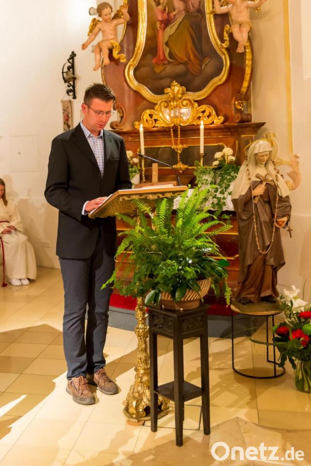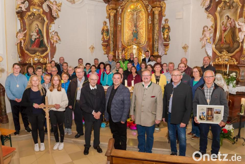 Eine besondere Ehrung gab es am Ende der Messe. Bernhard Schwamberger erhielt für seine 50. Teilnahme an der Wallfahrt ein Erinnerungsbild. Schon als Kind war er das erste Mal mitgegangen und ist bis heute der Tradition im Glauben treu geblieben. Pfarrgemeinderatssprecher Michael Zehent aus Pleystein dankte den Pilgern für ihre Treue zum Wallfahrtsort. Zum Gottesdienst hatte er extra die Statue der Heiligen Rita von der Kapelle zum Altarraum bringen lassen, da diese von den Thanhausern besonders verehrt wird.