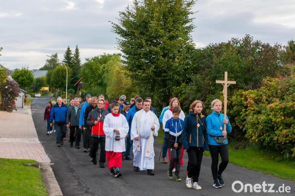 Unter Pilgerführer Bernd Schwamberger zogen 46 Fußwallfahrer mit Gebet und Gesang von Thanhausen nach Pleystein zum Kreuzberg. Die Wallfahrt begann mit einem Pilgergottesdienst in der Schlosskirche. Pfarrer Konrad Amschl segnete das neue Pilgerkreuz, das vom ehemaligen Wallfahrtsleiter Hans Heldwein gespendet wurde. Dann schickte er die Wallfahrer mit dem Pilgersegen auf den Weg und begleitete sie bis zum Ortsausgang.
