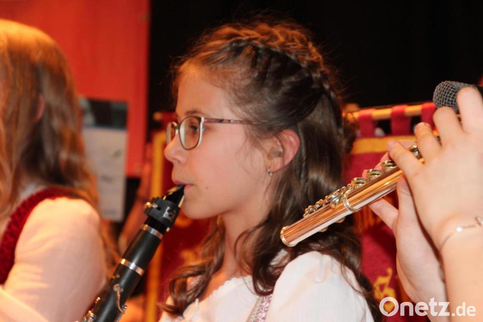 Erstmals auf der Bühne mit dabei bei der 22-köpfigen Blaskapelle war die zwölfjährige Lucia Daubitzer aus Wendern. Seit vier Jahren ist sie dabei, sie spielt Klarinette. Die Frage, ob sie nervös sei, bejahte sie: „Ja, ein bisschen schon, denn meine ganze Familie ist da, Papa, Mama, meine Geschwister, einfach alle.“ Dennoch freue sie sich auf ihr erstes Konzert hier in der Mehrzweckhalle. Um es vorwegzunehmen: Sie machte keine Fehler.