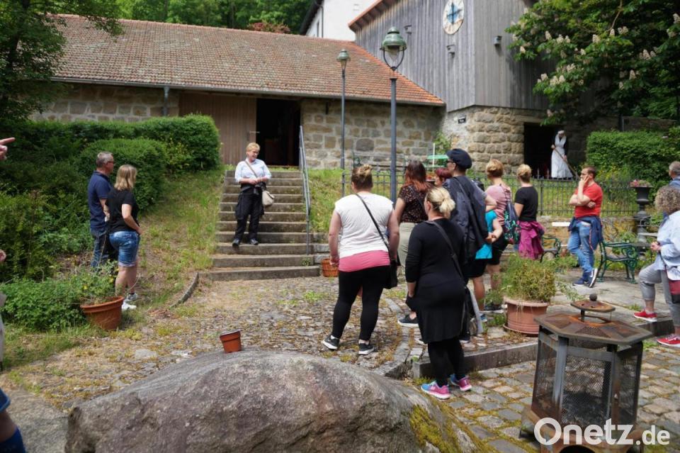 Bei allen szenischen Darstellungen wurde das Publikum mit einbezogen, so auch bei einem Duell im Schlosshof. Die zweite Szene vor der Kirche handelte von einem Weibsbild, das den Herrn von Epleben "wohlwollend angeschaut" habe und dafür bestraft werden sollte. Beim Anwesen des Gasthauses Träxler erfuhren die Gäste, dass es einst gleich drei Brauhäuser im Ort gab – bei gerade mal 300 Einwohnern. Dort wurde auch die Sage erzählt, dass man um Mitternacht nicht zum Schwarzweiher reiten dürfe, denn dort sollen Geister ihr Unwesen treiben. Über eine Strecke von gut zwei Kilometern führte die geschichtsträchtige Wanderung durch den Wald um Thanstein.
