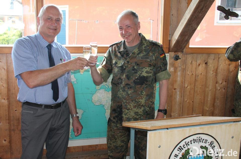 Am nächsten Tag wurde das Seminar im Raum zwischen Waldmünchen und Neunburg fortgesetzt. Nach einer Geländeorientierung auf dem Schwarzwihrberg und der Besichtigung einer Wallmeisteranlage marschierten die Soldaten zum Salzfriedlhof nach Hillstett. Am Donnerstagmorgen erhielten die Offiziere einen Einblick in die Flora und Fauna des Prackendorfer und Kulzer Moos durch Gebietsbetreuerin Birgit Simmeth vom Naturpark Oberpfälzer Wald und Seenland. Nach der Ausbildung empfing Bürgermeister Walter Schauer die militärische Delegation im Wintergarten Café. In seiner Ansprache hob er die langjährige gute Verbindung zur Bundeswehr hervor. Er lobte das gute Patenschaftsverhältnis mit der 3. Kompanie des Gebirgsbataillons 8 aus Pfreimd. Seit 1973 gibt es militärische Patenschaft mit verschiedenen Einheiten. Der sogenannte „Bürger in Uniform“ ist in unserer Gemeinde ein immer gern gesehener Gast, mehrere feierliche Gelöbnisse und Chefwechsel fanden hier schon statt, so das Gemeindeoberhaupt. Insbesondere die beiden Reservistenkameradschaften hoffen auch zukünftig auf Unterstützung bei der Ausbildung ihrer Reservisten und Mitglieder. Nach dem Eintrag ins Gästebuch machten sich die Soldaten unter der Führung des 2. Bürgermeisters Wolfgang Niebauer und mehreren mittelalterlich verkleideten Mitgliedern des Burgvereins auf den Weg durch das Dorf zur Burg. Dabei besichtigten sie Schloss, Zehentstadel, Kirche, Kriegerdenkmal, Schule, Schmiede, Burganlage, Turm und erhielten ausgiebige Informationen dazu. Ein geselliger Hüttenabend mit der Thansteiner Bevölkerung und allen Gästen schloss sich an. Generalmajor Norbert Wagner bedankte sich bei den unterstützenden Thansteiner Vereinen, die für eine abwechslungsreiche Gestaltung des Rahmenprogramms in der Weiterbildungswoche sorgten. Die Gemeinde kann stolz sein, auf seine Vereine und die Bevölkerung, die auch äußerlich eine große Gemeinschaft bilden. „ Ihr wart ein einmaliger Gastgeber, der sicherlich vielen in Erinnerung bleiben wird“, so Wagner. Als Dankeschön überreichte er Präsente an verschiedene Personen.