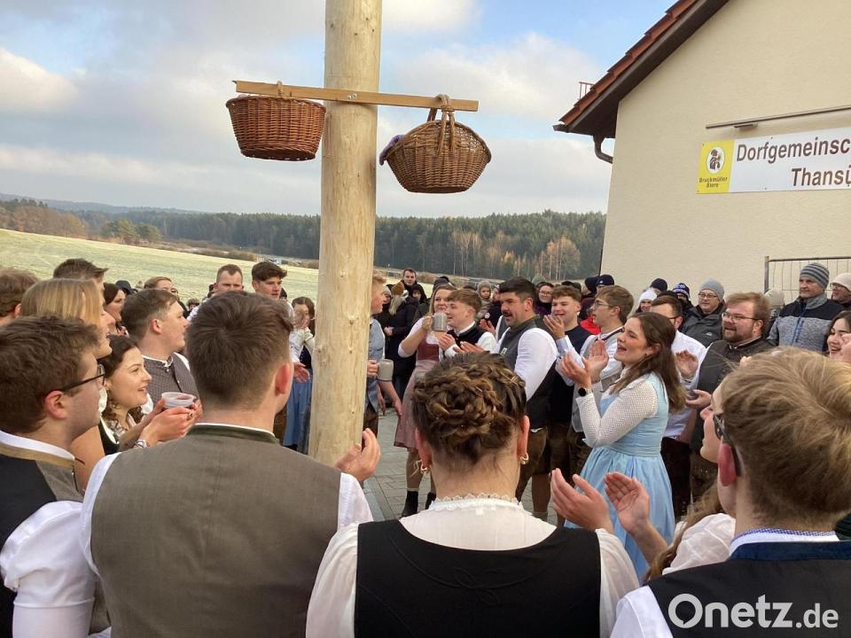 Ob in den Bierkrügen auch Glühwein war? Jedenfalls hielt sich zumindest am Sonntag der Glühweinkonsum mit dem Bierausschank die Waage. Das Pils fiel ohnehin den Temperaturen zum Opfer, weil es bei den minus 14 Grad in der Nacht zuvor eingefroren war. Die Kirwaburschen, die den Baum bewachten, fanden es dank ihren Feuertonnen aber noch ganz erträglich, wenn auch das Wochenende insgesamt die 18 Paare an ihre Grenzen brachte.