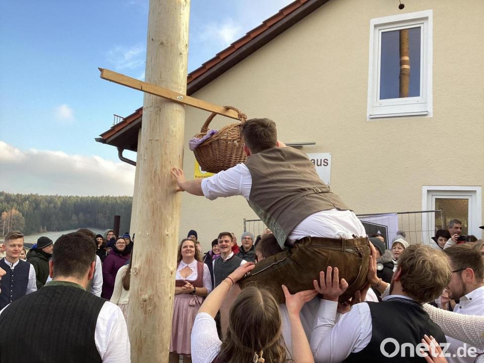 Am Sonntag wurde dazu in der gleichnamigen evangelischen Kirche der Kirchweihgottesdienst mit Pfarrer Matthias Weih gehalten. Nachdem der Samstag mit Kränzebinden und Baumaufstellen, Barbesuch mit musikalischer Umrahmung durch D’ Übler Boum ausgefüllt war, folgte nach dem Gottesdienst die Vorbereitung aufs Baumaustanzen. Um 14.30 Uhr war es so weit und unter Juchzern und "Gurzern" versammelte man sich um den Baum, wo die Bierkrüge standen.