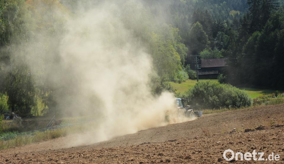 Die Trockenheit der vergangenen Tage hat Spuren hinterlassen. Jede Arbeit auf den Feldern löst ein Staubwolke aus.