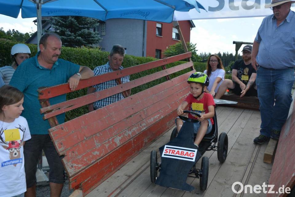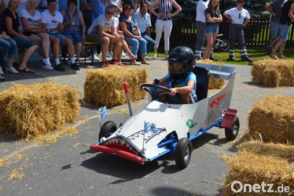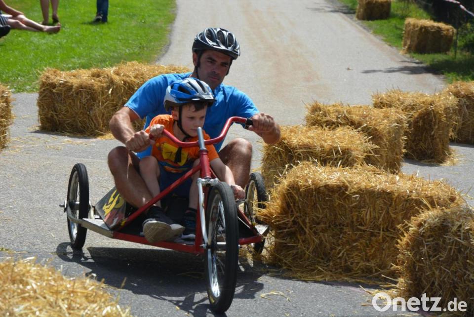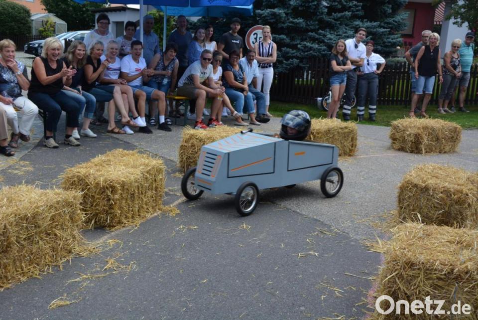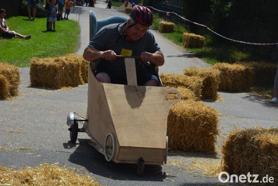 Es war kurz nach 13 Uhr, als die letzten Vorbereitungen für das Rennen abgeschlossen waren. Am Streckenrand hatten sich zahlreiche Zuschauer versammelt, die die Rennfahrer lautstark anfeuerten. Das Startzeichen gab jeweils Dirk von Ameln, an der Zeitnahme hatten Organisationsleiter Alexander Fachtan und sein Team alles im Griff. Vom Start aus ging es die abschüssige Dorfstraße hinab, ehe eine mit Strohballen aufgebaute Schikane den Teilnehmern fahrerisches Geschick abverlangte. Die Teilnehmer starteten in vier Altersgruppen, einige hatten sogar ihre eigene Seifenkiste mitgebracht. Selbst Bürgermeister Johann Burger setzte sich ans Steuer, konnte aber nicht ganz vorne mitmischen.
