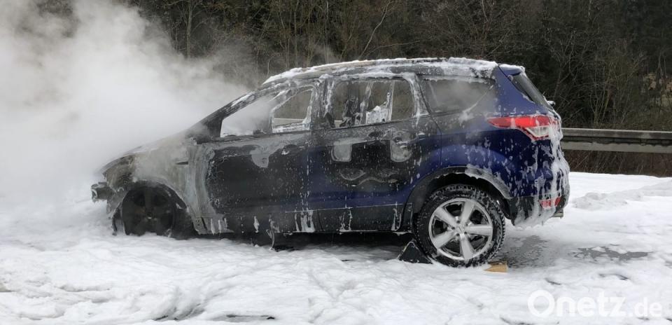 In dem Auto waren ein 49-Jähriger und sein 22-jähriger gehbehinderter Sohn Richtung Nürnberg unterwegs. Als plötzlich Rauch aus dem Motorraum drang hielt der Fahrer auf der rechten Fahrspur. Zusammen mit zwei Ersthelfern, die die Gefahr erkannten und beherzt eingriffen, konnte der junge Mann, der auf einen Rollstuhl angewiesen ist, aus dem Fahrzeug geholt werden. Der Pkw brannte danach komplett aus.
