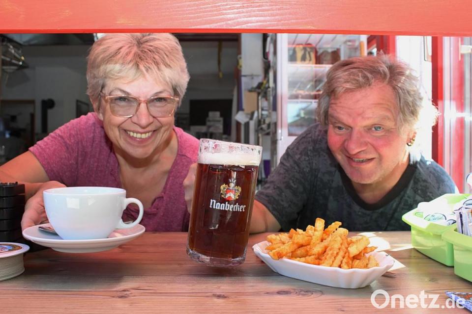 Im Moment hat die Radlbahnhof-Wirtin jedoch anderes zu tun, denn am Ausgabefenster im Biergarten stehen die Durstigen und Hungrigen schon wieder Schlange und warten darauf, dass sie bestellen dürfen. Nur zu gerne reicht Christa Getränke, Pommes und Brotzeiten durch das Fenster, ein nettes Lachen gibt es immer gratis dazu. „Hier treffe ich jeden Tag neue Leute“, erzählt sie. „Das ist richtig schön. Und wenn man dann immer noch so netten Zuspruch bekommt, dann weiß man: Es kann nicht so verkehrt sein, was man macht.“ Jetzt hoffen Christa und ihr Mann Berni auf einen goldenen Herbst, so dass sie den Biergarten vor dem Radlbahnhof auch weiterhin täglich öffnen können. Schließlich macht das Radeln auch in dieser Jahreszeit richtig Spaß. Und nicht nur das Radeln, auch die Pause. Vor allem die am Radlbahnhof Theuern.