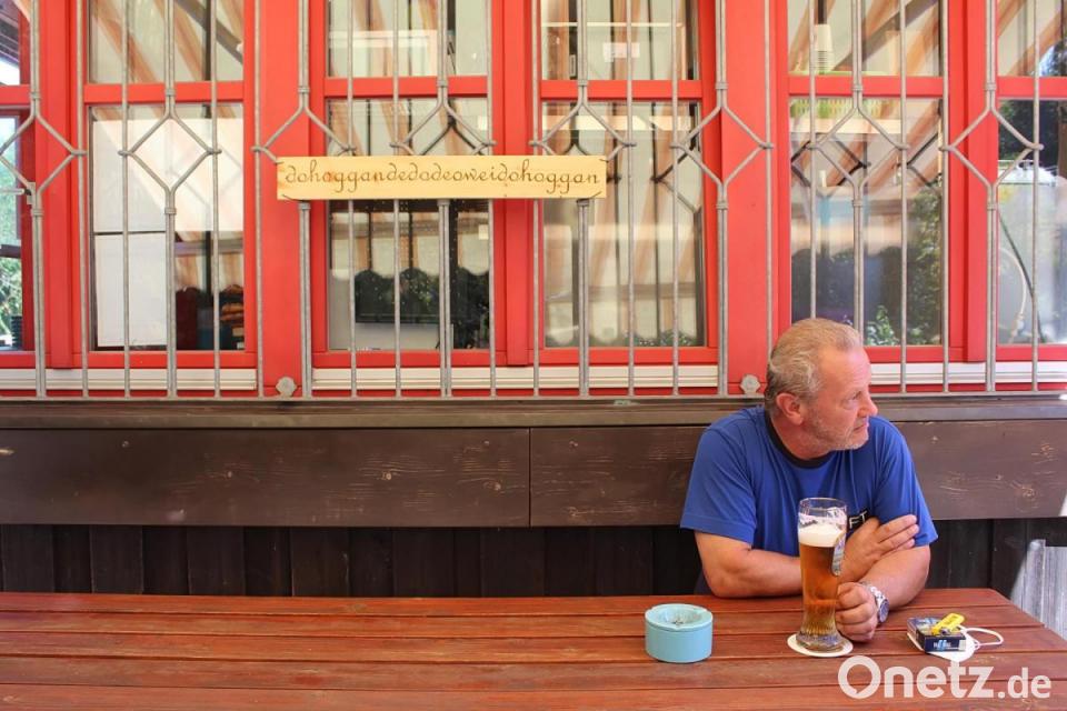 „Ein Helles und eine Currywurst mit Pommes, bitt’schön.“ Es herrschen warme Spätsommertemperaturen, der Biergarten ist voll und Christa Reis hat alle Hände voll zu tun. Seit letztem Jahr ist sie die Radlbahnhof-Wirtin. Zusammen mit ihrem Mann Bernhard, der von allen eigentlich nur Berni genannt wird, sorgt sie für das leibliche Wohl der Gäste. Diese bestehen nicht nur aus Radlfahrern, die auf dem Fünf-Flüsse-Radweg unterwegs sind, und Touristen, sondern auch aus Einheimischen. Einen Stammtisch gibt es ebenfalls, auf dem Holztaferl vor dem Eingang in den ehemaligen Warteraum, der heute als Gaststube genutzt wird, ist es eindeutig zu lesen: „Dahoggandedodeoweidohoggan.“ Für alle, die des Oberpfälzischen nicht mächtig sind, übersetzen die Männer, die es sich hier mit ihrem Bier gemütlich gemacht haben, lachend: „Da sitzen die, die allerweil hier sitzen.“