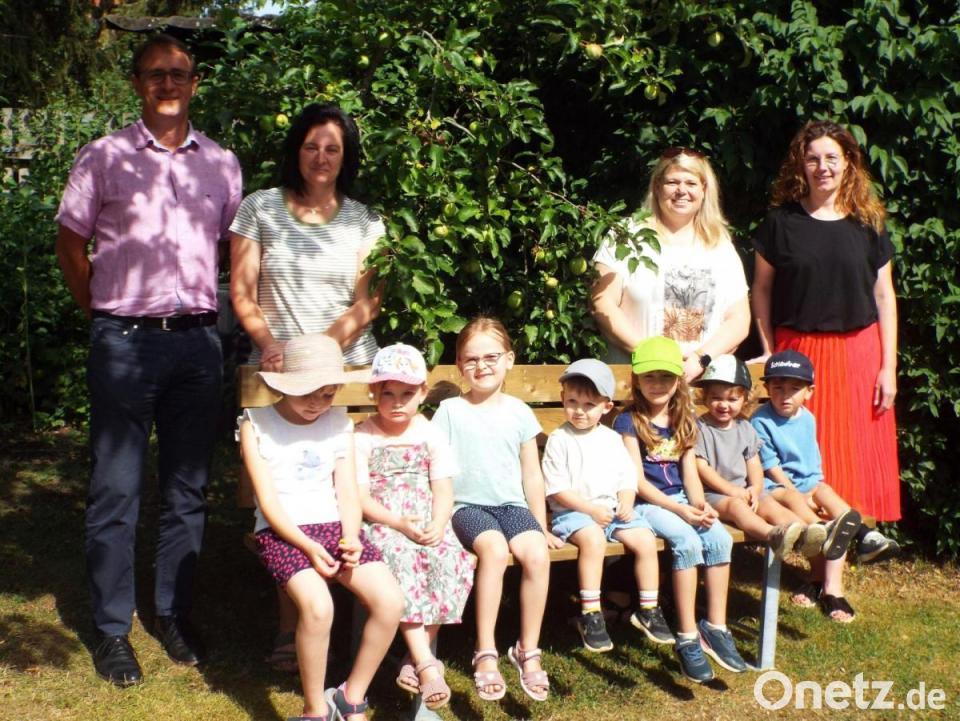 Ob Frauenmantel, Immergrün oder Bärlauch: Bei der Pflanzentauschbörse der Kindertagesstätte St. Nikolaus in Theuern haben viele Pflanzen neue Besitzer gefunden. Die Tauschbörse bei der Mühle in Kooperation mit dem Kulturschloss war gut besucht. Kindergartenleiterin Claudia Reinisch und der Elternbeirat boten Kaffee und Kuchen an, der Verkauf brachte immerhin 614 Euro in die Kasse. 33 Kinder und sechs Erzieherinnen profitieren nun davon, denn man kam überein, davon zwei Sitzbänke für den Kindergarten anzuschaffen. Nun wäre es einfach gewesen, die beiden Bänke über den Großhandel zu erwerben. Aber das wollen Claudia Reinisch und Elternbeiratsvorsitzende Martina Grünwald nicht. Eine Einrichtung aus der Region sollte die Bänke fertigen, und da kam man dann auf die Jura-Werkstätten. Deren Beschäftigten stellten die Bänke in Handarbeit her. Nun wurden sie von Bernhard Albrecht dem Kindergarten übergeben, sie passen perfekt in den Garten.