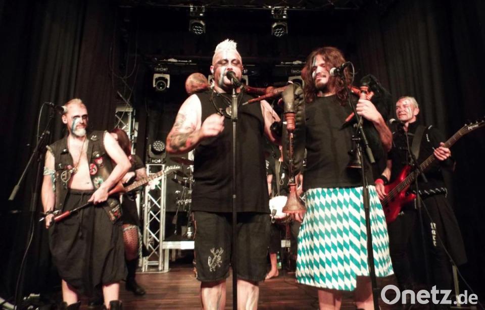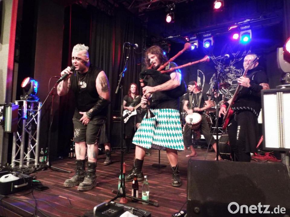 Mit Trommeln und Dudelsack legten Rammeschucksn los, dann folgte ein üppiges Rock-Programm, Mittelalter-Rock-Fans hatten sichtlich ihren Spaß. Aus Floß stammen die mächtig geschminkten Musiker, die den Saal erbeben ließen: Frontmann Noah Lugert (Sänger), Moritz Kirschner (Dudelsack), Sandro und Johann Lugert (Onkel und Vater des Frontsängers), das quirlige Energiebündel Yasmin Stein (Gitarre), Michael Stein (Schlagzeug) und Kai Vogel (Dudelsack).