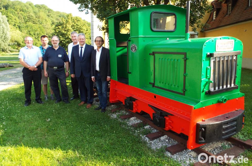 (e) Die Diesellokomotive mit einem Deutz-Motor, gebaut 1938 von der Firma Gmeinder und Co in Baden, war 1984 in den Besitz des Museums in Theuern übergegangen. Seither stand sie dort im Depot, unbeachtet und vor sich hin rostend. Jetzt ist das anders: Sie ist, so sagte Landrat Richard Reisinger bei einer neuerlichen Indienststellung in Theuern von Null auf Hundert zu einer „Visitenkarte“ für Theuern geworden. Denn sie steht jetzt prominent platziert auf ihren Gleisen, zwei Kipploren angehängt, vor dem Kulturschluß und unübersehbar. „Das ist ein Zeugnis unserer Montangeschichte, authentisch für unsere Region und am richtigen Ort“ freute sich der Landrat und mit ihm Museumsleiter Michael Ritz. Der Dank des Landrats galt in massiver Weise den Mitgliedern des Vereins Amberger Kaolinwerke (AKB) die bei dieser „Indienststellung“ dabei waren. Denn sie machten es in ihrem Amberger Vereinsgelände um den Lokschuppen am Galgenbergwerg möglich, aus dem verrosteten Gefährt ein Ausstellungsstück zu fertigen - nie war die Diesellokomotive schöner. 2. Vorstand Dr. Matthias Gruschwitz sprach von einem guten „Kooperationsobjekt“ zusammen mit dem Schloss, die Mitglieder der Amberger Kaolinbahn haben seinen Angaben folgend auf der Anlage rund 350 Arbeitsstunden ehrenamtlich geleistet: Komplett entrostet, abgeflext, repariert, mit Spezialfarbe gestrichen, dazu die zwei Kipploren restauriert. Das Ergebnis ist unübersehbar im wahrsten Sinne des Wortes, denn an der neuen Diesellok mit ihren zwei Kipploren kommt niemand vorbei. Funktionstüchtig ist sie nicht mehr, sie wird die nächsten Jahrzehnte Ausstellungsstück in Theuern bleiben.