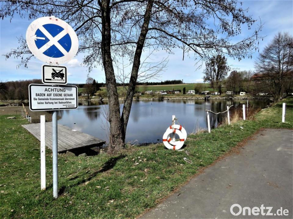 Zwei große und unübersehbare Anweisungsschilder - angebracht vor der Wiese des Erlenweihers für die Nutzer der Anlage - sagen Uneinsichtigen oder Nichtwissern, was Sache ist im Badesommer 2021: Unter anderem dürfen Hunde nur noch mit Leine auf das Gelände mitgebracht werden. Außerdem zeigt ein Hinweisschild nun schriftlich vor Ort, dass das Baden hier nur auf eigene Gefahr möglich sei. "Die Gemeinde Krummennaab übernimmt keine Haftung bei Badeunfällen", heißt es. Und Parken auf der Wiese? Das geht gar nicht. Ein durchgestrichenes Fahrzeug auf dem Warnschild unterstreicht auch diese Regel deutlich.