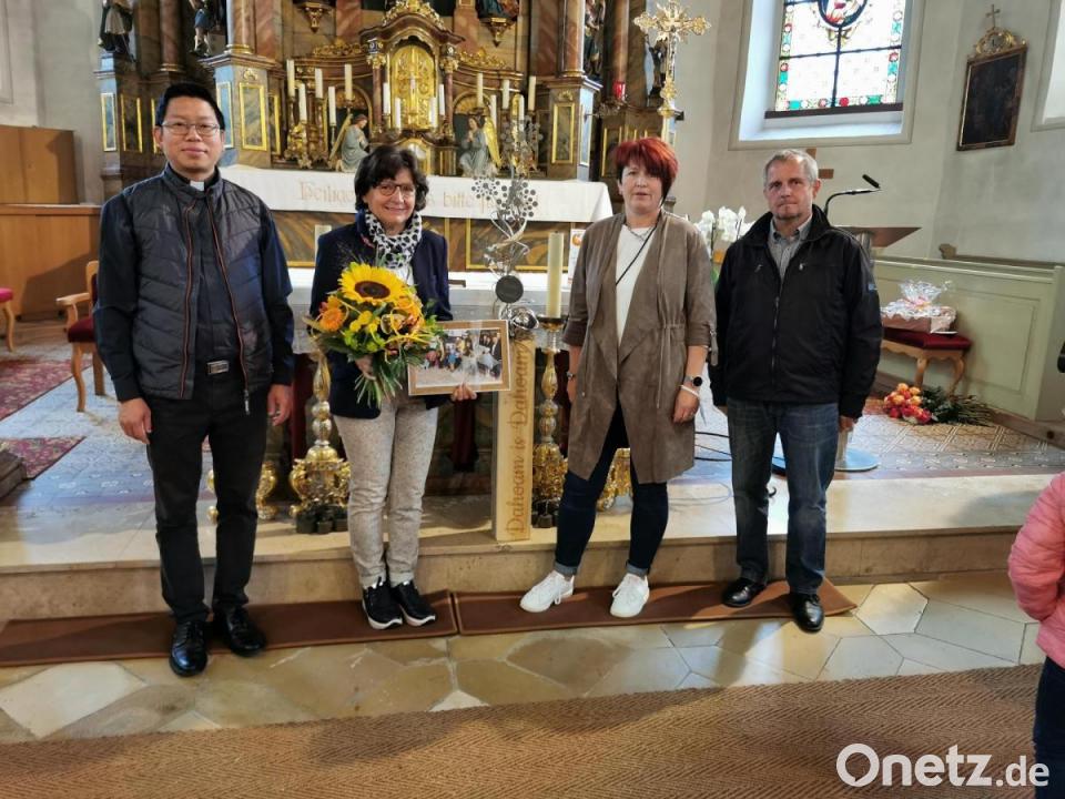 „Kollegin“ Marion Eschenweck hatte eine „Dahoam is Dahoam"-Skulptur zum Abschied überreicht, denn Gerlinde Stopfer beendete nach zehn Jahren ihre Tätigkeit als Fahrerin des Thurndorfer Kindergartenbusses. Dazu gab jedes der Kinder eine Rose dazu, sodass ein „Arm voll“ davon zusammenkam. Kirchenpfleger Georg Schraml dankte für ihren „Klasse Job“, und Pater Samuel Patton schloss sich dessen Dankesworten an.