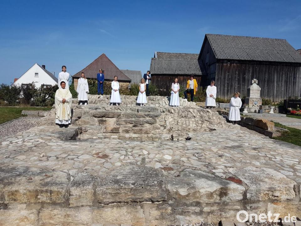 „Bunt wie ein Regenbogen“: Das Motto der diesjährigen Erstkommunion erinnerte seit April vor dem Altar der Thurndorfer Pfarrkirche an ein noch nicht stattgefundenes Fest. Auch die Fotos der zwei Buben und drei Mädchen hingen dort schon lange. Schuld an dem Aufschub war das Coronavirus. Fünf Monate später war es nun aber endlich so weit, der „besondere Tag“, wie es Pater Samuel bezeichnete, konnte stattfinden. Zusammen mit ihren Eltern, mit Pater Samuel und den Ministranten an der Spitze zogen die Kommunionkinder in die Pfarrkirche ein. Die Musikkapelle Thurndorf hatte am Friedhofsportal Aufstellung genommen und geleitete den Zug mit ihren Klängen in die Kirche. Zwischengesang und Kyrie befassten sich dann inhaltlich mit dem Regenbogen. Pater Samuel stellte in seiner Predigt den erstmaligen Empfang der Heiligen Kommunion als Besonderheit dieses Tages heraus. „Jesus kommt zu euch, und ist gegenwärtig in der Gestalt eines Brotes“, sagte der Pater. Er rief die Kinder dazu auf, dieses Geschenk ihr Leben lang zu schätzen und dafür mit Dankbarkeit erfüllt zu sein. Nach dem feierlichen Kommunionempfang hieß es in der Meditation: „Bleibt in mir – so bleibe ich in euch.“ Vor dem Schlusssegen bedankten sich die Eltern bei Pater Samuel für die Ermöglichung der Feier, trotz der momentan herrschenden Einschränkungen, und bei Marion Eschenweck für deren Einsatz bei der Vorbereitung.