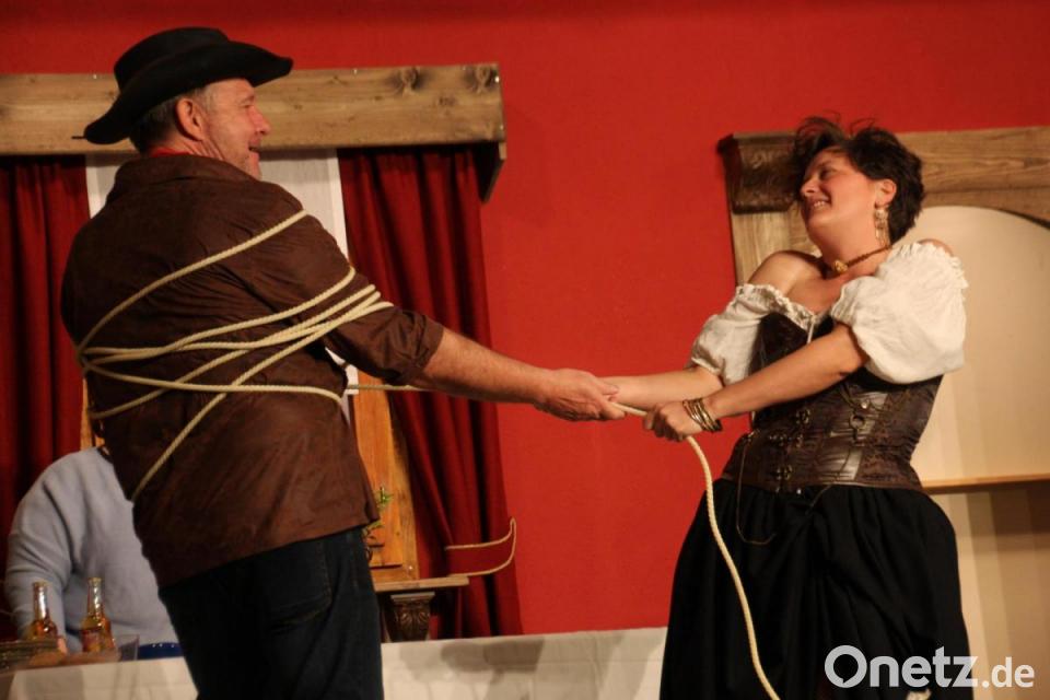 Eigentlich ist es eine verdeckte Diebstahlserie, die da auf der Spaßettl-Bühne ziemlich unspektakulär aufgeklärt wird. Dass dies soweit kommt, ist letztendlich einem semiprofessionellen Zwei-Personen-Filmteam sowie einem nicht mehr ganz taufrischen Schauspieler zu verdanken, die in einem Gutshof Quartier beziehen, um dem Westernhelden „Lasso Larry“ zu einem Comeback zu verhelfen. Da wird getanzt und gesungen, philosophiert und geflirtet, gefeiert und geschlemmt: Eine turbulente Handlung also, ganz nach dem Geschmack des Publikums, das die bei der Premiere zur Bestform auflaufenden zehn Akteuren auf der Bühne reichlich beklatschte. Mit dem Dreiakter „Lasso, Liebe, Fencheltee“ hat die Theatergruppe somit wieder ins Schwarze getroffen und zweieinhalb überaus unterhaltsame Stunden beschert.