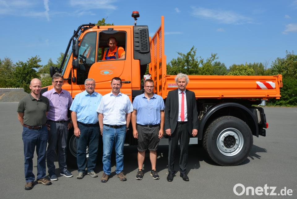 Landrat Wolfgang Lippert kam persönlich in den Kreisbauhof, um den Unimog an die 20 Mitarbeiter, die sich um 213 Kilometer Kreisstraße kümmern, zu übergeben.