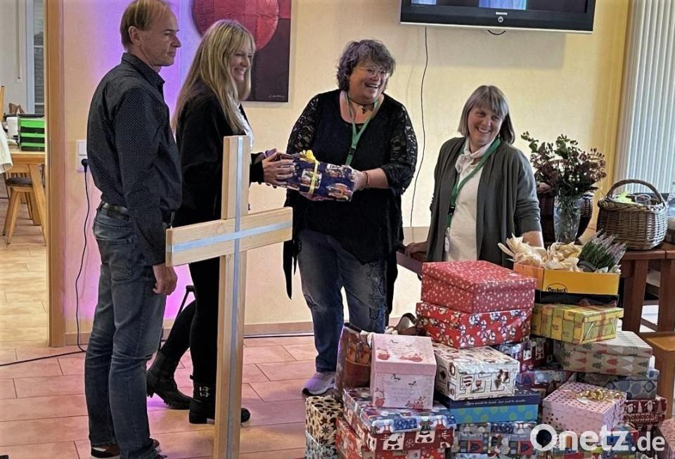 Manuela und Ullrich Schaller nahmen die Weihnachtspäckchen sowie die Geldspende mit viel Freude entgegen und bedankten sich herzlich. Die Go-Church-Mitglieder haben die 42 Weihnachtsgeschenke nach einer Liste aller benötigten Sachen, die Karo zusammengestellt hat, mit Kleidung, Spielzeug, Schulsachen, Hygieneartikel und Süßigkeiten vollgepackt.