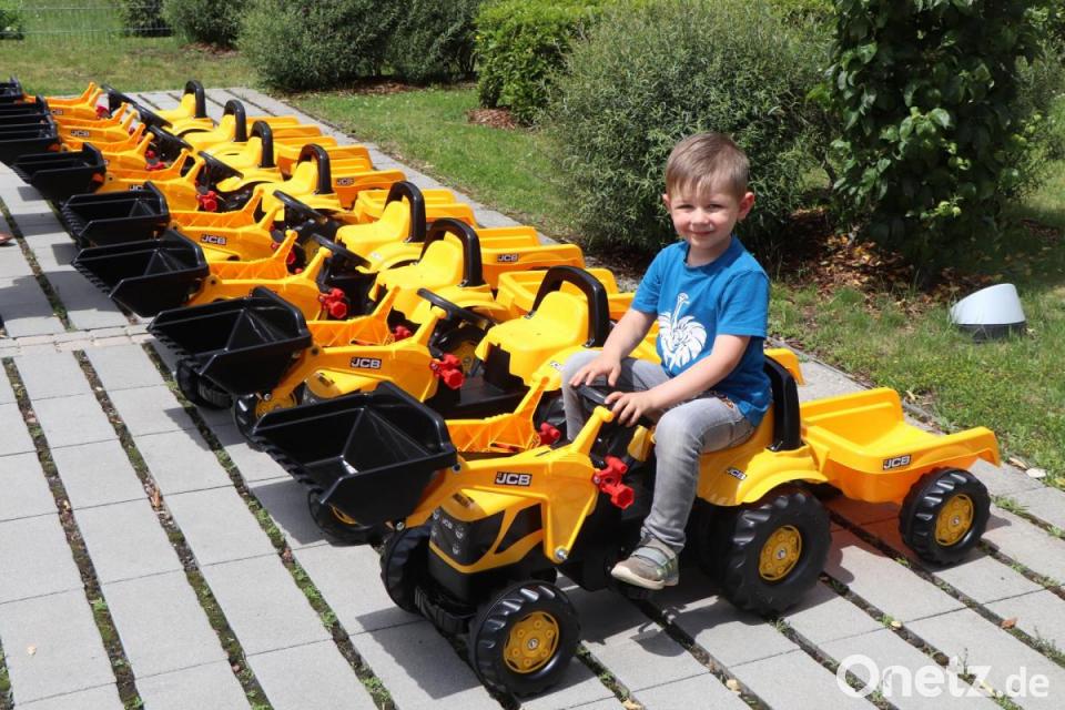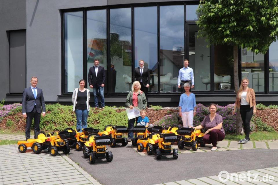 Was „die Großen“ da besprechen, interessiert den Vierjährigen auf seinem Bulldog wenig. Obwohl es für die Kindergärten aus Tirschenreuth und Mähring besonders wichtig ist. „Wir wollen uns mit der Spende erkenntlich zeigen, was die Kindergärten leisten und ihre Arbeit würdigen“, sagt Regionalmarktleiter Wolfrum. Noch bis September dieses Jahres laufe die Focus-Kampagne „Immobilien, Bauen und Wohnen“, über die die Aktion läuft. Die Spende stammt aus dem Gewinnsparverein. Der evangelische Kindergarten, das Kinderhaus „Kunterbunt“, der katholische Kindergarten und das Kinderhaus „Dorfpiraten“ Mähring erhalten jeweils zwei der Traktoren.