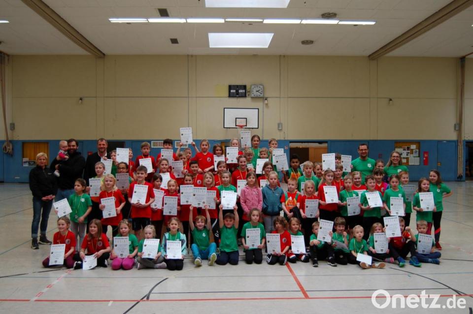 79 Kinder im Alter zwischen 3 und 11 Jahren aus den drei Vereinen TB Jahn Wiesau, ATS Mitterteich und ATSV Tirschenreuth traten dabei in einer Art „Stiftländer Meisterschaft“ gegeneinander an. Der Wettkampf wurde nach Ranglistenpunkten als Einzel-Vierkampf gewertet. Nach den Disziplinen 2x30m Hindernissprint, Medizinball-Stoßen, Hochsprung bzw. Hochweitsprung stand die letzte Disziplin an. Die Kinder lieferten sich je nach Alter eine oder zwei Hallenrunden heiße Positionskämpfe. Dabei wurden sie lautstark lang angefeuert. Besonders große Teilnehmerfelder gab es bei den Mädchen in den Jahrgängen 2012 und 2013 mit 12 bzw. 9 Kindern. Zahlreiche Eltern der 44 ATSV-Teilnehmer, aber auch fünf Gäste vom TB Wiesau betätigten sich als Helfer und trugen so maßgeblich zu einer gelungenen Kinderleichtathletik-Veranstaltung bei. Bei der Siegerehrung gab es für alle Teilnehmer Urkunden, die drei Erstplatzierten jedes Jahrgangs erhielten zusätzlich Medaillen.