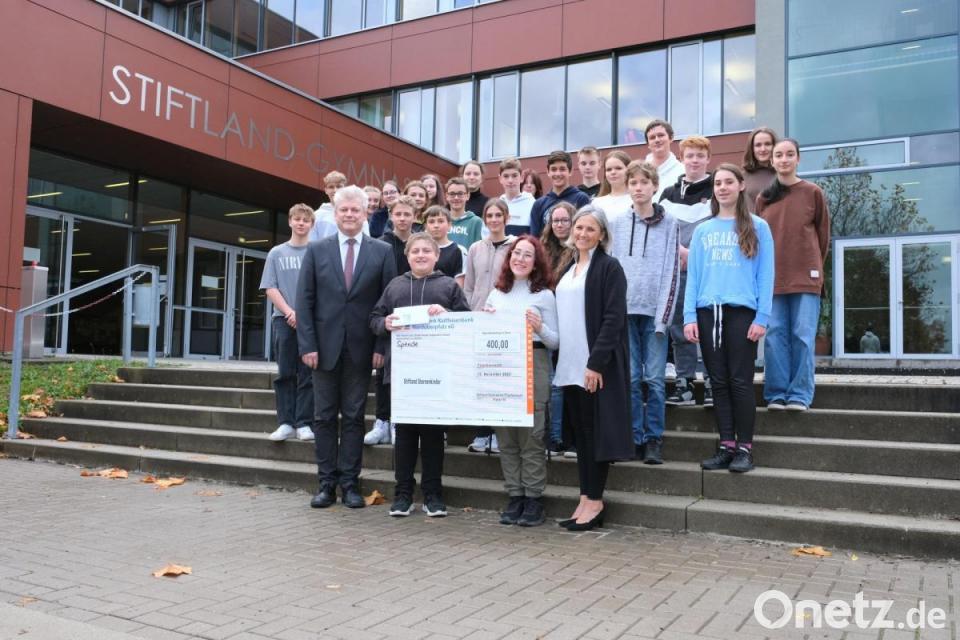 „Und was machen wir mit den Einnahmen vom letztjährigen Schulfest?“ So lautete die Frage, die sich die Klasse 9b des Stiftland-Gymnasiums laut Mitteilung seit längerem stellte. Durch den Verkauf von Crêpes und Losen für eine Tombola hatten die Buben und Mädchen 400 Euro zusammengetragen, die nun einer wohltätigen Organisation in der Region zugutekommen sollten. Die Wahl fiel auf den Verein Stiftland-Sternenkinder, da dieser Familien mit behinderten Kindern, welche teilweise eine verkürzte Lebenserwartung haben, individuell bei verschiedensten Problemen unterstützt.
