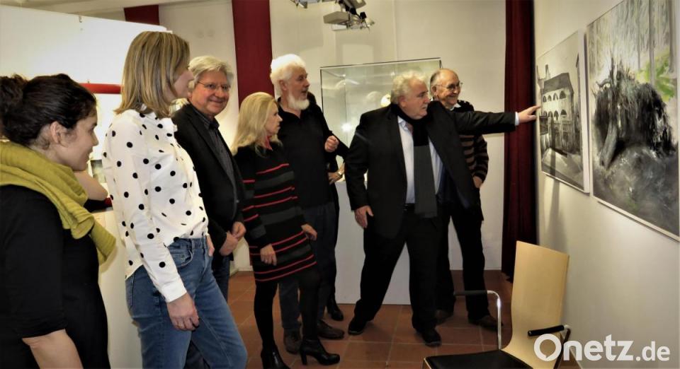 Beim Bild von Toni Eichinger mit Titel "Tirschenreuth Flurnummer 185" blieb man lange stehen, denn dieses Gemälde weckte nicht nur aus künstlerischen Gründen großes Interesse. Peter Gold erklärte ausführlich, was mit dem historischen Bau in Zukunft geschehen solle. Es werde zwar vorerst keinem bestimmten Zweck zugeführt, aber die Stadt wolle das Gebäude mit den Arkaden "kalt" sanieren. Damit könne der Altbau für die Nachwelt erhalten bleiben. Gegen 17 Uhr wurden die Stellwände mit Kunstwerken geleert, um Platz zu machen für die nächste Präsentation. Schon in dieser Woche wird wieder eifrig gewerkelt, die Weihnachtsausstellung muss rechtzeitig zum Start der Adventszeit aufgebaut sein.