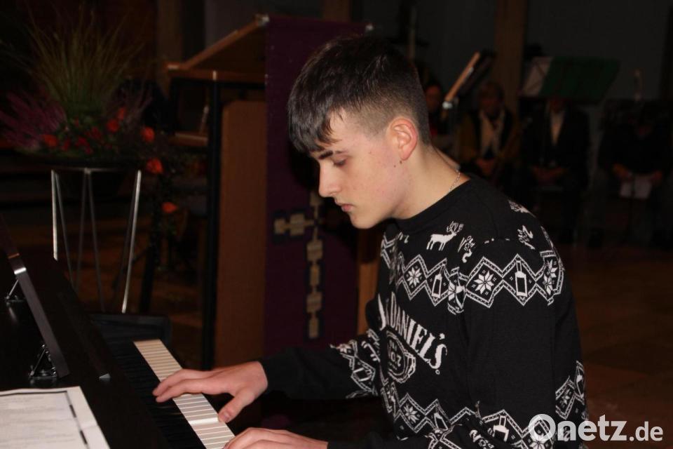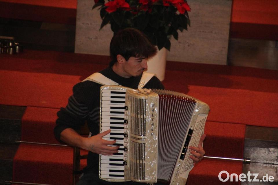 Imposant spielte anschließend Klaviervirtuose Arthur Romanenko, wie ebenso später Simeon Franz als Meister des Akkordeons. Zwei absolute Top-Musiker. Großer Blickfang der Adventsmusik war natürlich die Singklasse der Kreismusikschule unter der Leitung von Klaudia Kormann. Die Buben und Mädchen sangen unter anderem „Weißer Winterwald“. In eine ganz andere Musikrichtung „driftete“ die Band „Hawedere“ mit Uli Sangl ab, ihre irischen Lieder wie „Lord of dance“ waren einfach nur stark und voller Rhythmus. Dafür gab es zu Recht viel Applaus.