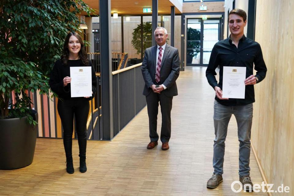 Zwei duale Studenten des Amtes für Ländliche Entwicklung (ALE) Oberpfalz wurden von Behördenleiter Thomas Gollwitzer für ihre hervorragenden Bachelorarbeiten ausgezeichnet. Anna Schwarzmaier und Johannes Bayer studierten Vermessung und Geoinformatik an der Hochschule Würzburg-Schweinfurt.