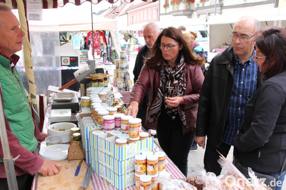 (kro) Es reichte von Blumen, Pflanzen, Gewürzen und Teesorten aller Art, bis hin zu leckerem und frischen Obst und Gemüse. Natürlich gab es auch Imbissstände mit Bratwürsten und Steaks, auch Fisch und Käsespezialitäten wurden angeboten. Der Pferdemetzger mit seinen beliebten Rosswürsten durfte ebenso nicht fehlen. Beim Flanieren durch die Budenstadt musste keiner hungern, zumal auch die Cafés, Pizzerien und Eisdielen am Marktplatz geöffnet hatten. Das Sortiment der Fieranten umfasste auch die aktuelle Sommer- und Schuhmode und weitere Textilien aller Art.
