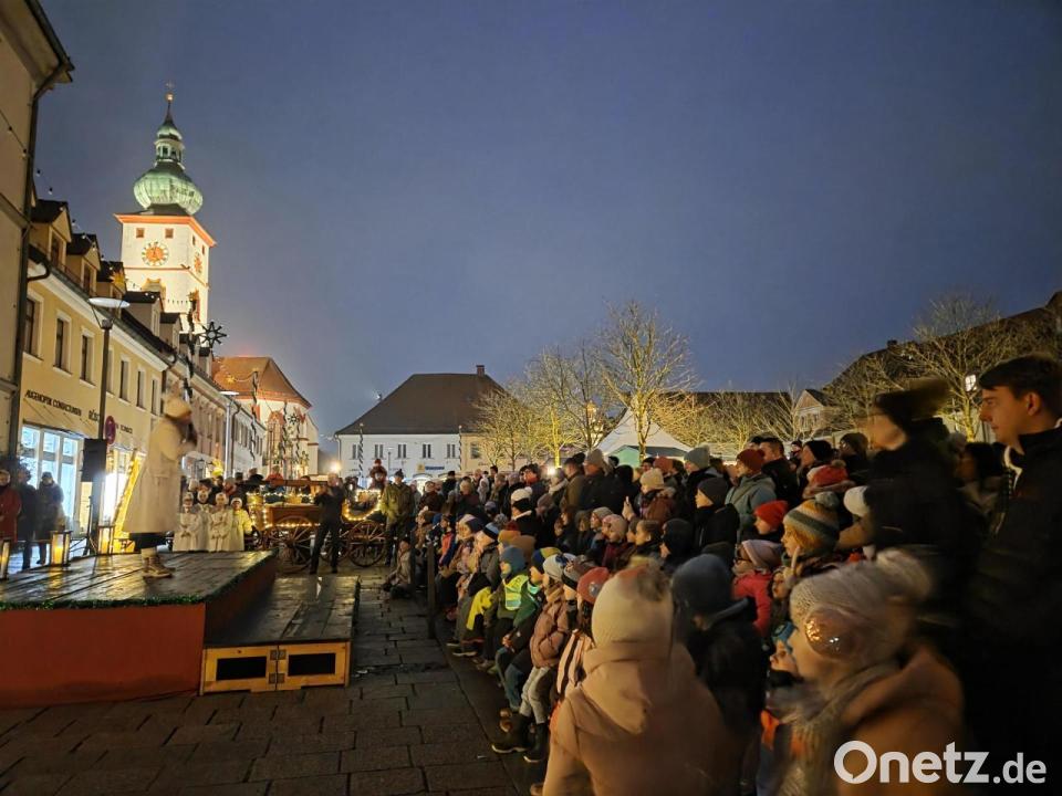 Wenn das Christkind kommt, ist ganz Tirschenreuth zum Marktplatz unterwegs. Auch diesmal nutzten viele Familien die Gelegenheit, zuerst den kunsthandwerklichen Weihnachtsmarkt und anschließend das Erscheinen des Christkinds zu erleben. Ein wenig Geduld mussten die Buben und Mädchen allerdings mitbringen. Vorher wurden sie von vier Engelchen - Leonie, Tim, Alina und Peter - mit Schokolade überrascht. Die Himmelsboten sammelten die Wunschzettel ein. Janka Hannemann-Mathes, Vorsitzende des Stadtmarketingvereins als Ausrichter der Veranstaltung, hieß 400 Kinder und Erwachsene willkommen. Hannemann-Mathes betonte, dass hier 17 Organisatoren und Vereine mitwirken.