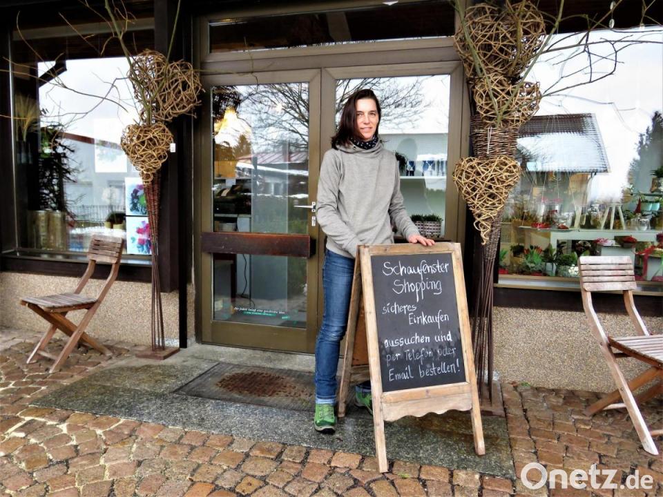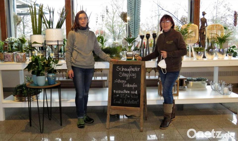 Dass sich Nicole Punzmann von der Gärtnerei Schröpf mit einem Kunden per Handy über Blumen unterhält, während dieser draußen auf Augenhöhe mit ihr vor dem Schaufenster der Gärtnerei steht, hätte sich die junge Floristin noch vor einem Jahr nicht im Traum vorstellen können. Corona verändert alles. "Die Kundin hat sich für eine Pflanze interessiert und wollte Pflegetipps", berichtet Nicole Punzmann. Täglich, bestätigen sie und ihre Mutter, Lisa Schröpf, kämen Leute vorbei, um sich von draußen übers Fenster etwas auszusuchen.