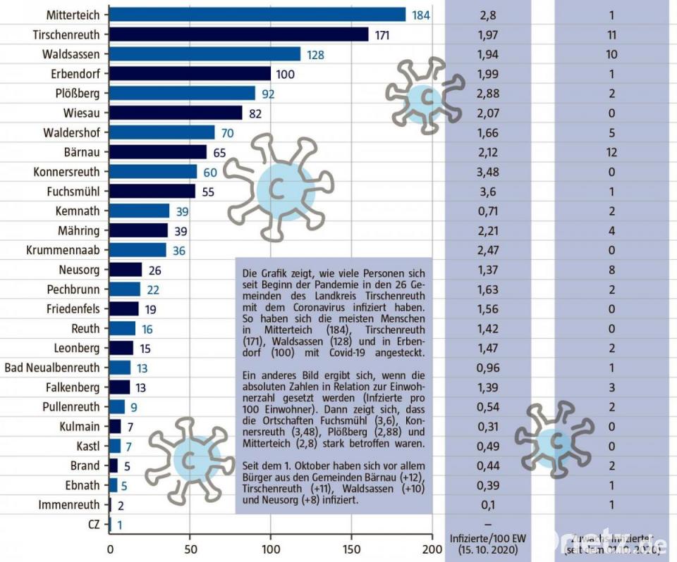 Für den Landkreis Tirschenreuth gilt ab Samstag, 17. Oktober, eine neue, strengere Allgemeinverfügung. Grund: Das Landesamt für Gesundheit (LGL) bezifferte am Freitag die 7-Tage-Inzidenz für den Landkreis mit 56,9. Für die Bürger bedeutet dies einige Einschränkungen. Folgende Punkte regelt die Allgemeinverfügung: