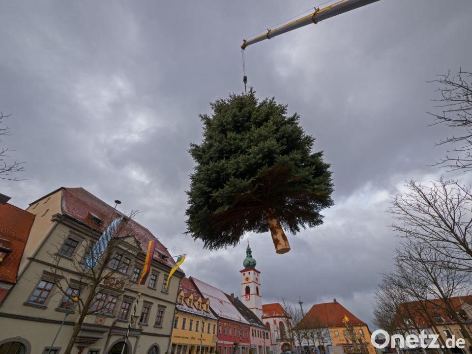 Aus einem Garten aus der Rote Erde Siedlung kommt heuer der Christbaum für den Marktplatz. Die Blautanne ist elf Meter hoch, wiegt zwei Tonnen und hat zwei Spitzen. Um die Haltegurte im Gipfelbereich anzubringen ging diesmal Baumkletterer Manfred Härtl vom Maschinenring zur Hand. Diese Aufgabe erledigen sonst Mitarbeiter des Bauhofs selbst vom Steiger aus. Doch der reichte nicht weit genug in das Grundstück hinein. Über den Sattlersberg wurde der Baum zum Marktplatz transportiert, mittels Autokran über die Kastanienbäume gehievt und zielgenau im dafür vorgesehenen Loch platziert. Im Gipfelbereich ist der bauchige Baum schon üppig mit vielen Zapfen geschmückt. Den weihnachtlichen Glitzer-Anzug aus zahlreichen LED-Birnchen erhält er im Laufe der Woche. Dafür zeichnen in bewährter Marnier Manfred Bauer und Martin Völkl verantwortlich. Neben dem Baum am Marktplatz haben noch fünf weitere zu schmücken, nämlich im Fischhof-Park, beim Kriegerdenkmal, beim Klettnersturm, am Platz La Ville du Bois und beim Museumsquartier.