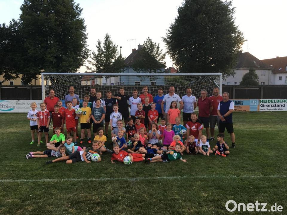 Aufgeteilt in Gruppen mit gleichem Alter ging es in Begleitung der Trainer von Station zu Station. Beim Slalomdribbling ging es zum Beispiel um Geschwindigkeit, aber auch um Technik mit dem Ball. Beim Doppelpass mussten die Kinder in der vorgegeben Zeit so viele Pässe wie möglich gegen einen umgelegten Biertisch spielen. Die letzten Reserven wurden dann beim gemeinsamen Abschlussspiel mobilisiert. Verdient hatten sich daher alle Teilnehmer die anschließende Brotzeit - am Grillstand bildete sich bald eine lange Schlange.