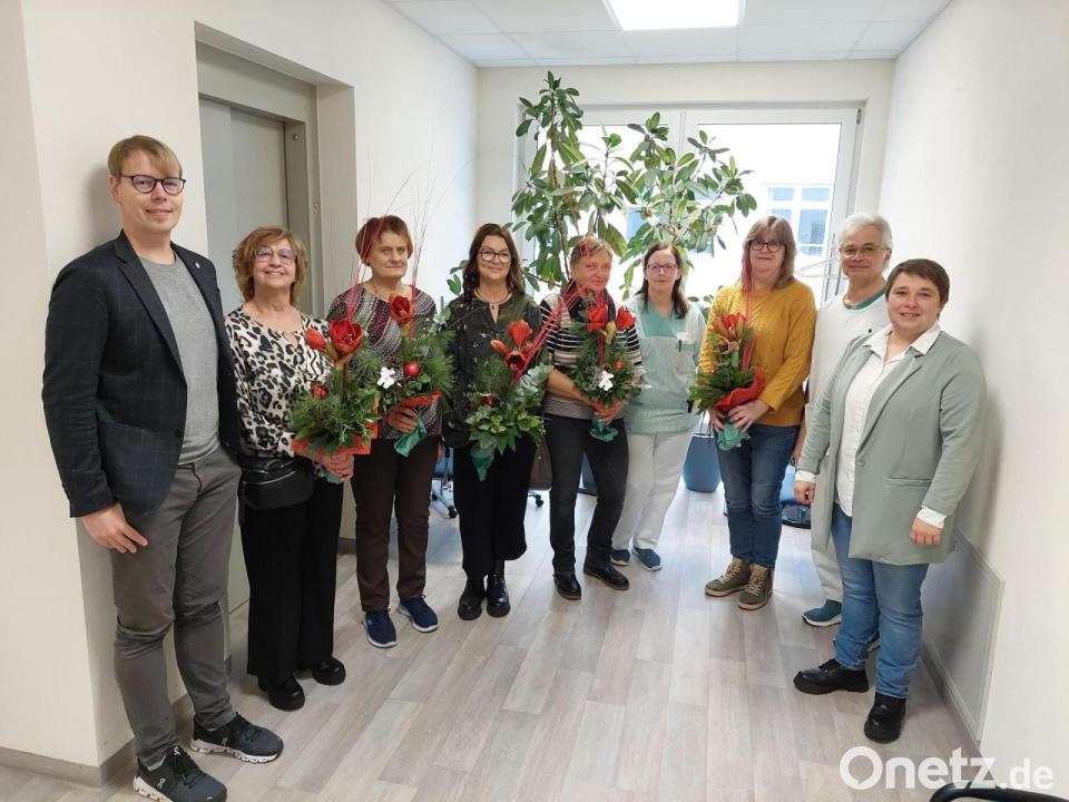 Im Besprechungsraum des MVZ Tirschenreuth fand kürzlich eine feierliche Ehrung langjähriger Mitarbeiter statt. Krankenhausdirektor Stephan Schumacher und die jeweiligen Teamleiter würdigten laut Pressemitteilung die Leistungen der Mitarbeiter, die in den Ruhestand gehen oder dem Krankenhaus seit 45, 40 oder 25 Jahren treu sind. Geehrt wurden Heike Slany (Anästhesie, 40 Dienstjahre), Monika Gmeiner (Reinigung, Rente), Martina Scholz (früher OP, jetzt VW, 40 Jahre), Therese Milosz (T1, Rente), Sandra Faber (Leitung Reinigung), Maria Kempa-Schwägerl (ZA, 45 Jahre), Wolfgang Wach (Teamleitung ANÄ/OP) und Nadine Zeis (Pflegedienstleitung). Nicht auf dem Bild ist Rilana Weiß (T1, 25 Jahre). Die Ausgezeichneten erhielten Blumen und Einkaufsgutscheine als Dank für ihre langjährige Mitarbeit.