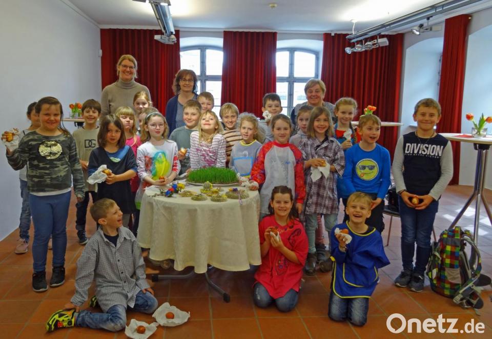 "Warum gibt es zu Ostern eigentlich Eier - und wieso sind die Eier bunt?" Diesen Fragen sind rund 70 Kinder der zweiten Klassen im Museumsquartier (MQ) auf den Grund gegangen. Beim "Ostereierfärben nach altem Brauch" verstand es Ingrid Leser einmal mehr, den Schulklassen altes Brauchtum und viel Naturwissen spielerisch an die Hand zu geben. Ein Topf voller Zwiebelschalen diente als Färbesud, die darin gekochten Eier bekamen als Verzierung Blattmuster von Giersch, Löwenzahn oder Schafgarbe auf die Schale. Jedes Kind durfte sein Ei natürlich selbst gestalten. Die Kinder waren schwer beeindruckt von Ingrid Lesers Färbegeheimnissen - und auch die anderen Osterobjekte fanden die Schulklassen ganz schön spannend: Ratschen, Palmbuschen, Osterkreuze - alles durfte angefasst werden. Abgerundet wurde der MQ-Besuch dann noch durch eine wilde Schnitzeljagd durch das Museum.