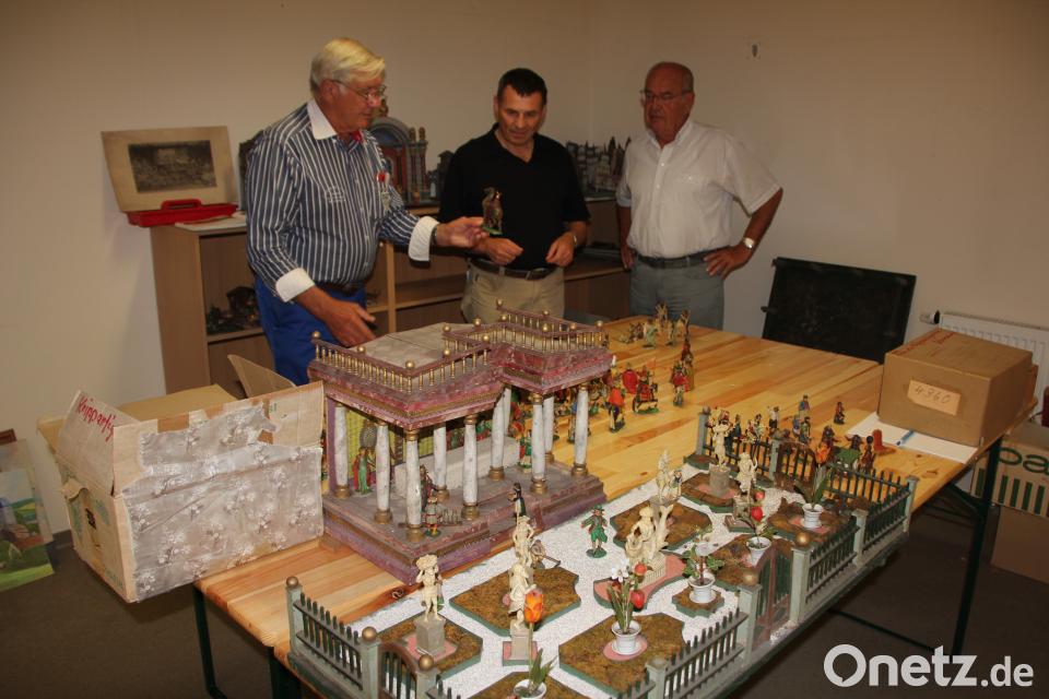 Das besondere Stück wurde bei der Tirschenreuther Krippenschau 1987/88 von Harald Fähnrich das letzte Mal in der Öffentlichkeit gezeigt. Seitdem lagert der Großteil auf dem Dachboden im "Mehler-Haus" in der Bahnhofstraße. Vergangene Woche brachte Alfons Mehler, in dessen Haus noch viele weitere Teile dieser Krippe lagerten, mehrere Schachteln von Figuren ins "Mehlerhaus". Dort sollen sie nach dem Wunsch der jetzigen Besitzer Rosi, Elisabeth, Felix, Alfons und Paulus Mehler auch bleiben. Ziel ist es, die Krippe dort in einer eigenen "Krippenstube" dauerhaft zu präsentieren. Bei der Übergabe der Figuren war auch Hans Lindner, Vorsitzender der Tirschenreuther Krippenfreunde mit dabei. Er zeigte sich begeistert von den noch zum Teil sehr gut erhaltenen Kippenfiguren. Die Anlage soll bei der großen Krippenschau - vom 8. Dezember 2018 bis 20. Januar 2019 im Museumsquartier, der Öffentlichkeit präsentiert werden. Neben dieser Krippe werden noch 40 weitere alte Landschaftskrippen ausgestellt.