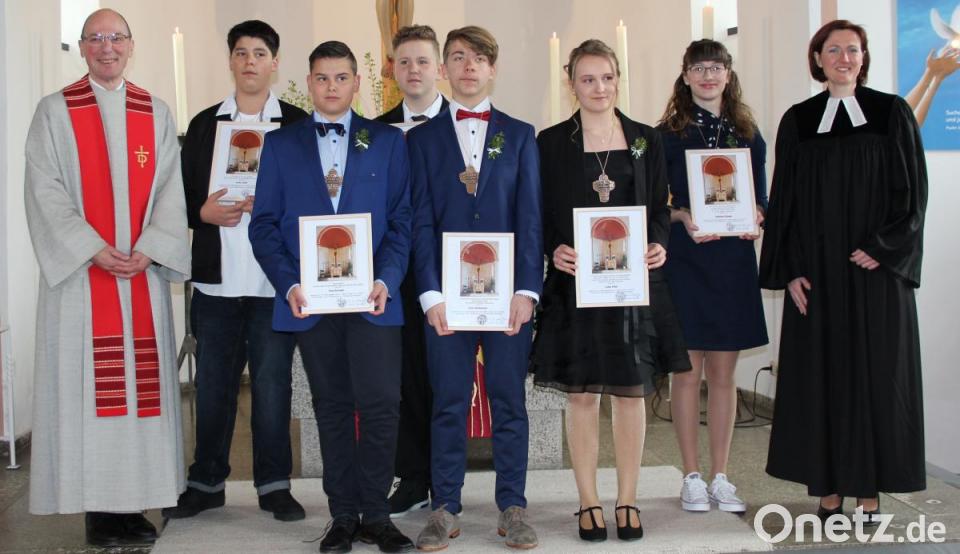 Besonders schön war natürlich der Einzug der Konfirmanden mit Pfarrerin Dr. Stefanie Schön und Diakon Fritz Lieb. Nach der feierlichen Einsegnung empfingen Leon Licha, Paul Schwab, André Kraus, Leon Griesbauer, Luise Robl und Felicitas Köstler ihren biblischen Konfirmationsspruch. Danach durften sie erstmals zum Abendmahl gehen.