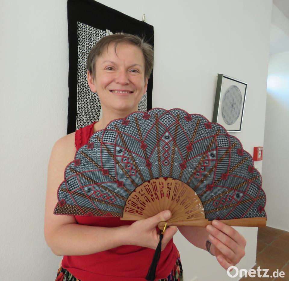 Dabei spielt es keine Rolle, ob mit 8 Paar Klöppeln oder 500 Paar gearbeitet wird. Natürlich werde ein Anfänger nicht gleich mit Hunderten Klöppeln beginnen. "Das ist Meisterkönnen." Sie selbst hat gut 100 Paar im Einsatz, wie zum Beispiel eingesetzt für den blauen Fächer. "Grundlage ist und bleibt die überlieferte Technik", erklärt die Weiherhammerin, die außer feinen Leinenfädchen aus ägyptischer Baumwolle auch Draht oder mitunter für große Exponate eine Wäscheleine verwendet. Die Präsentation im Museumsquartier sei ihre bisher größte Ausstellung. Deshalb sei sie auch ein wenig aufgeregt beim Gedanken an die Vernissage am heutigen Freitag.