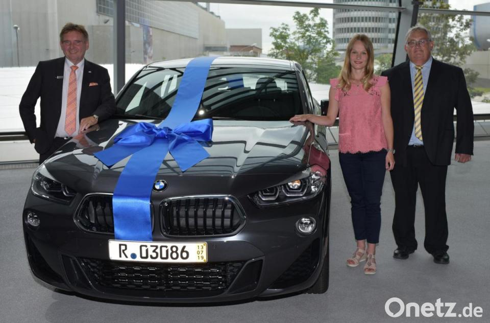 Übergeben wurde das Auto in einem feierlichen Rahmen bei der BMW-Niederlassung in München. Der Kundenberater Herbert Gmeiner von der Volksbank Raiffeisenbank Nordoberpfalz ließ es sich nicht nehmen, der glücklichen Gewinnerin persönlich zu gratulieren.