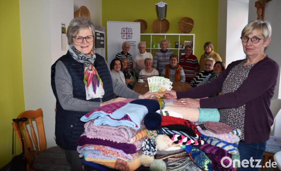 Eine Spende vom Frauenbund ist im "Strickcafé" auch Grund für den Kaffeeklatsch. Dr. Annemarie Schraml erhält 750 Euro vom Erlös aus dem Verkauf des Frauenbund-Ladens in der Vorweihnachtszeit. Und nicht nur das: Obendrein bekommt die Ärztin einen Berg an großen, selbst gestrickten Decken und mindestens 50 Wintermützen für ihre Aktion "Feuerkinder" in Tansania. Dr. Schraml aus Waldsassen fliegt seit Jahrzehnten jährlich regelmäßig nach Afrika, um unter anderem Kinder mit körperlichen Fehlbildungen an Beinen und Füßen zu operieren. Sie freut sich über jede Spende. "Ohne die finanzielle Unterstützung würde das nicht funktionieren", erklärt die Ärztin den Frauen und bedankt sich herzlich.