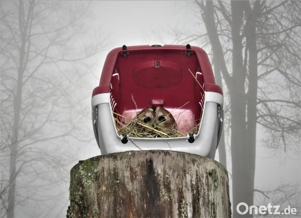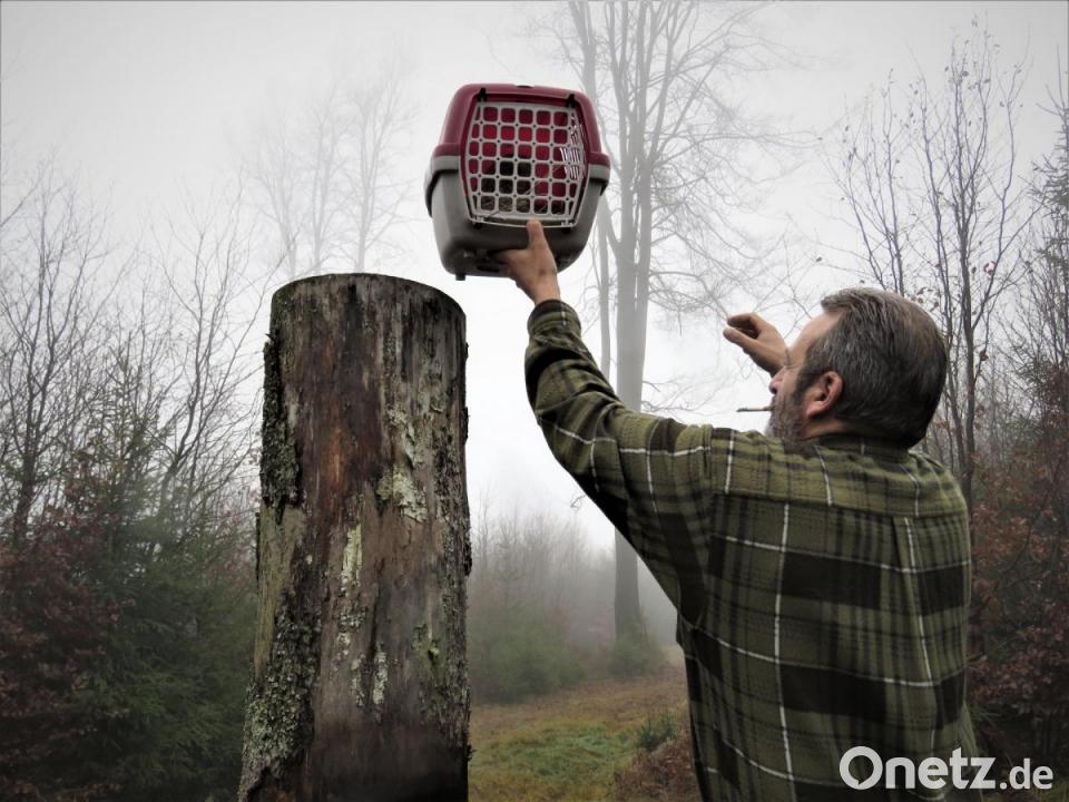 Brandl hat lange vorher nach einem Revier für den Vogel gesucht. Wo das ist, verrät er nicht. "Im Umland von Tirschenreuth", sagt er, wo er andere Käuze beobachtet habe. Nach einer holprigen Fahrt durch dichten Morgennebel im Jeep von Susanne Pätz wird im tiefen Wald bei einer Lichtung Stopp gemacht. Brandl stellt Sepp mit der Kiste auf einen Baumstumpf. Dann entfernt er die Klappe, Sepp ist frei.